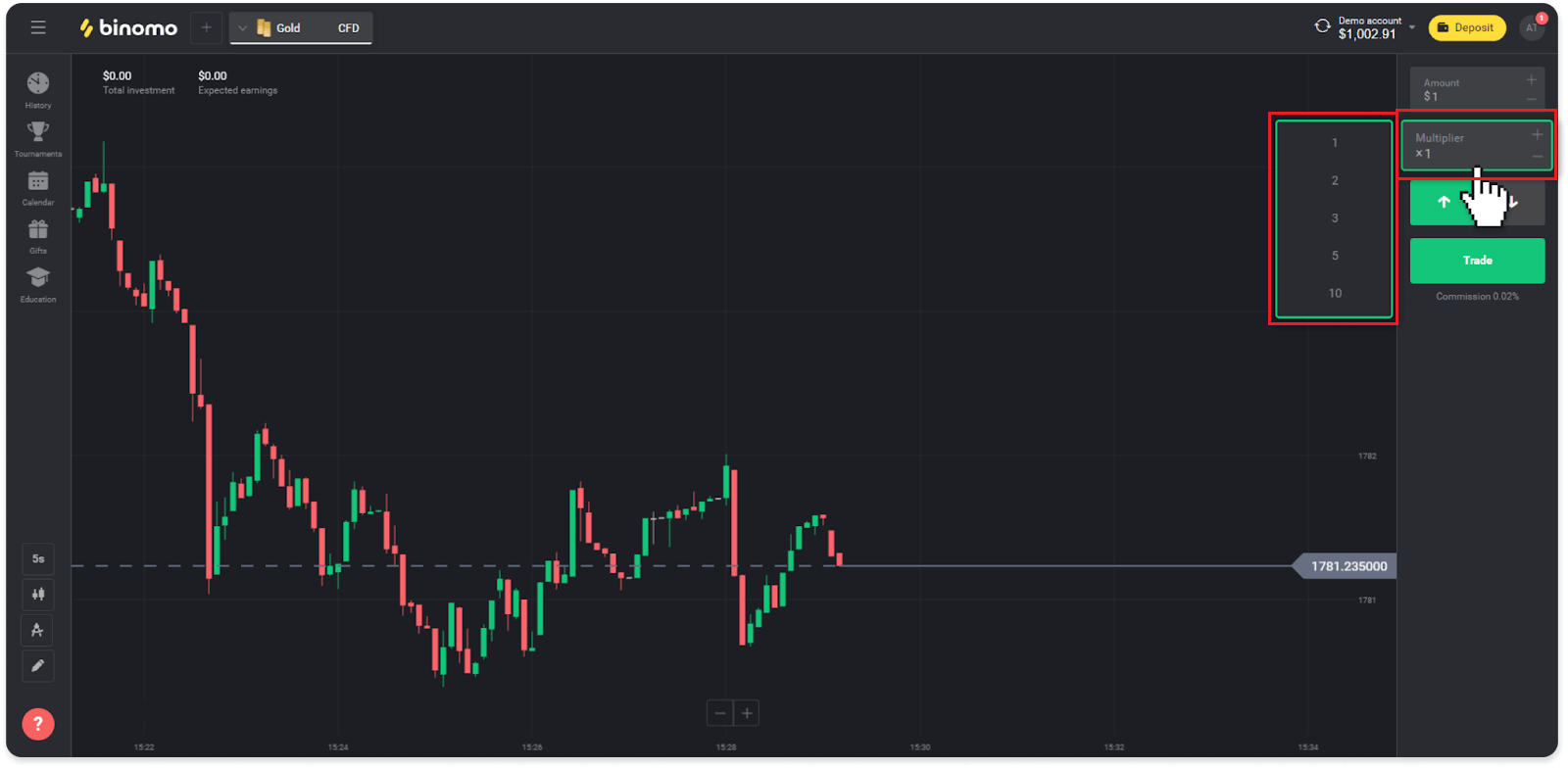The multiplier is a coefficient by which your initial investment is multiplied. This way, you can trade with a much higher amount than the one you are investing and get additional greater profit.