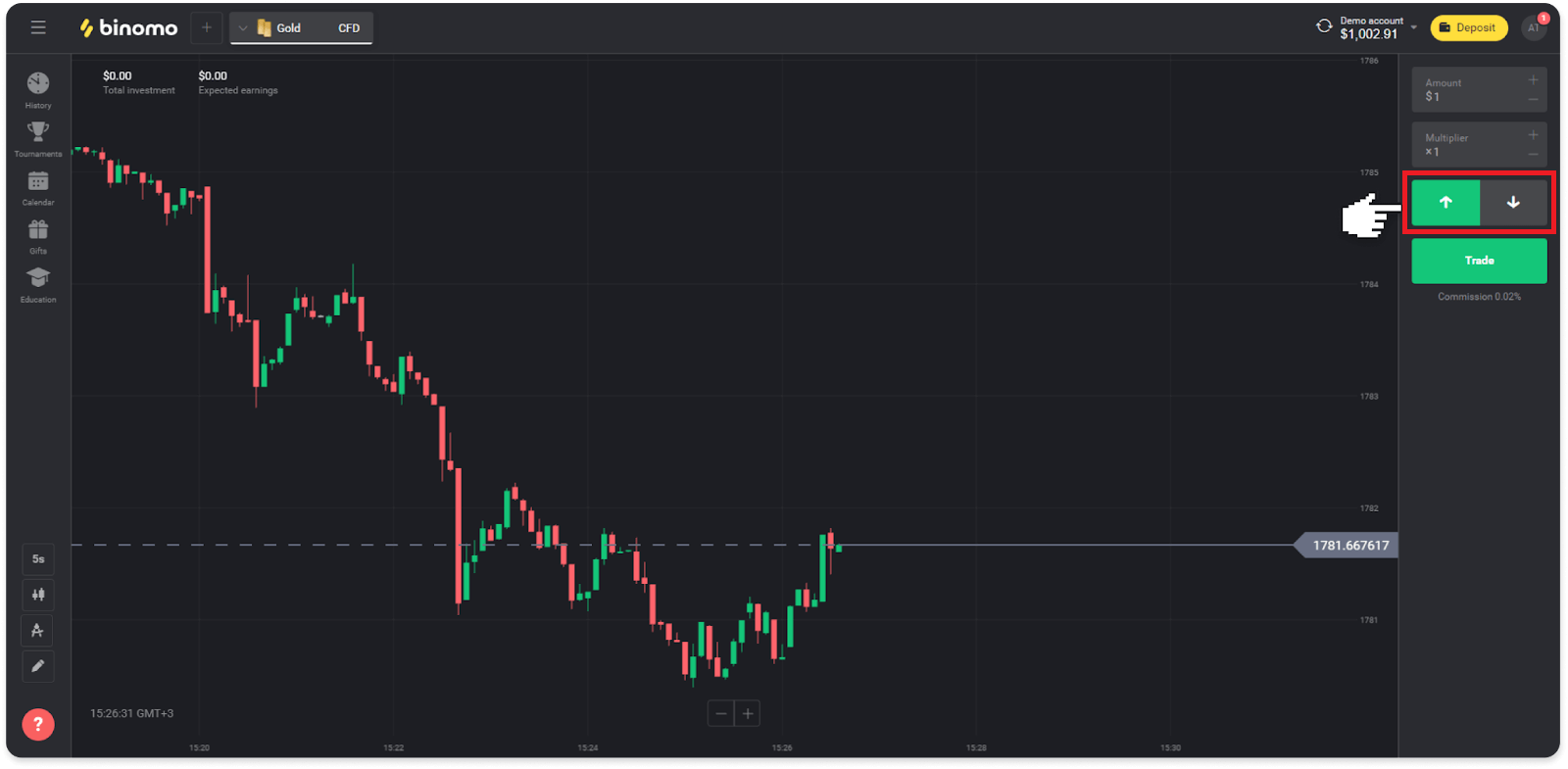 4. Fill in the trade amount – the minimum amount is $1, the maximum – $1000.